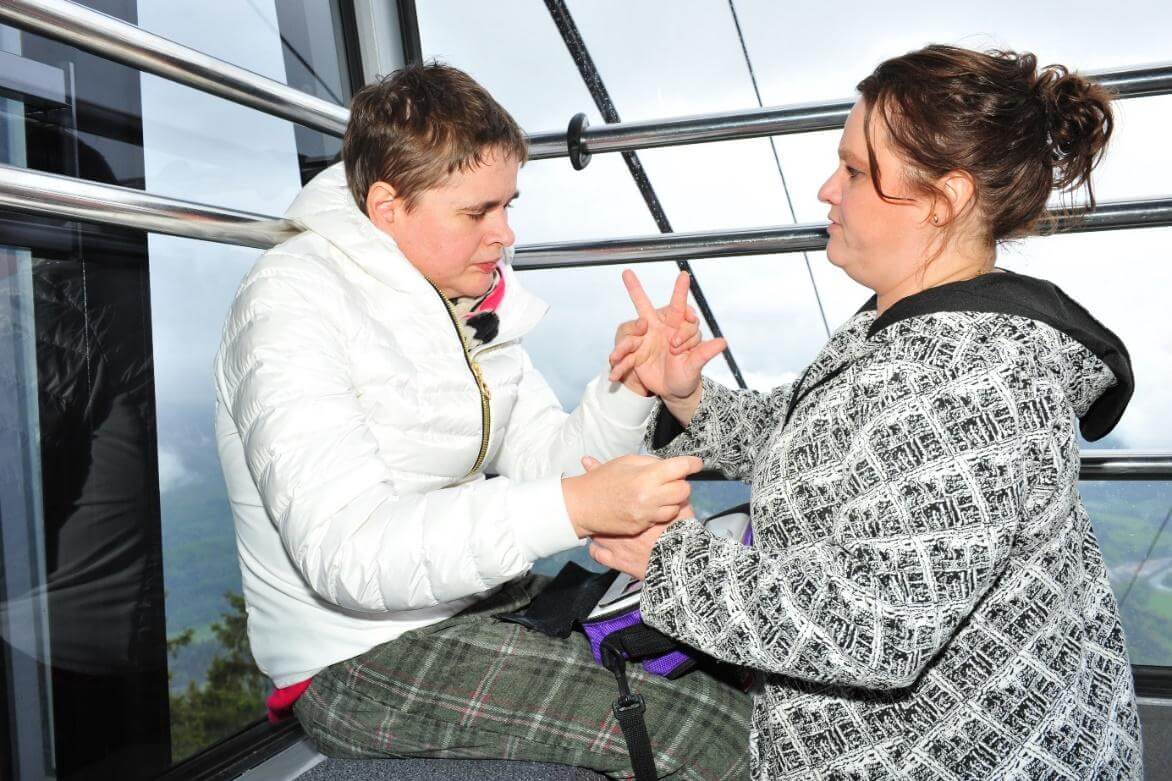 Voorbereiden en voorspelbaar maken van het bezoek aan de skilift in 4-handengebaren en de Proxtalker.